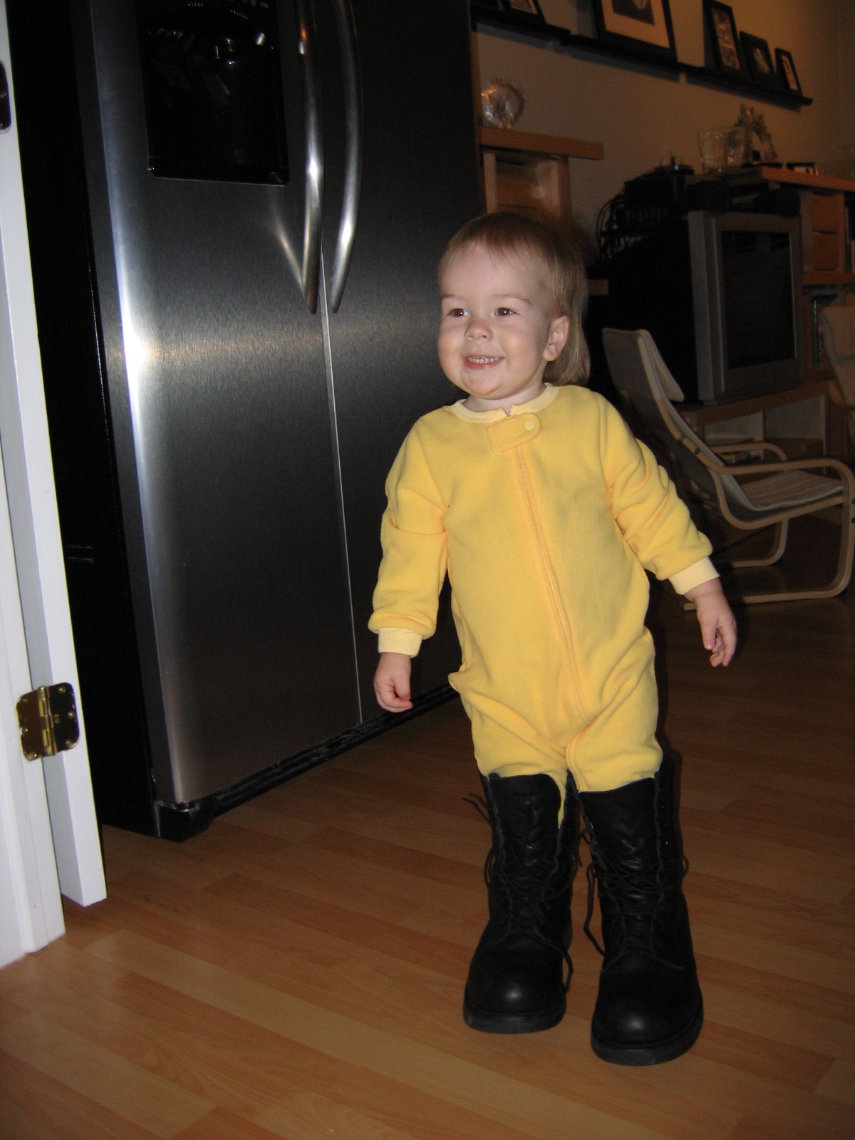 We thought we were geniuses when you were naughty and we put you in the "time-out" boots so you couldn't walk off... you even thought that was funny! I guess it was :)